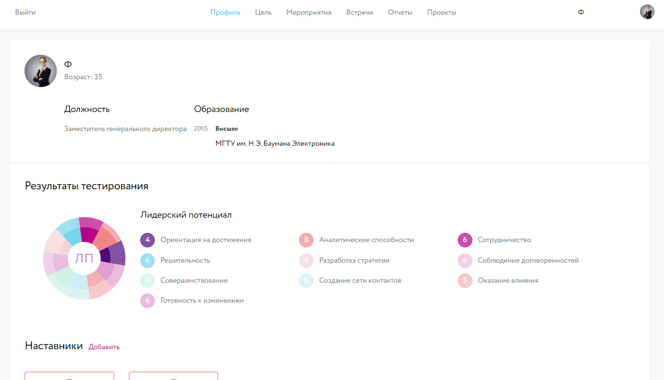 Автоматизированная система выбора ментора и наставника из числа ключевых руководителей разных отраслей с возможностью формирования рабочих групп для реализации Национальных проектов.